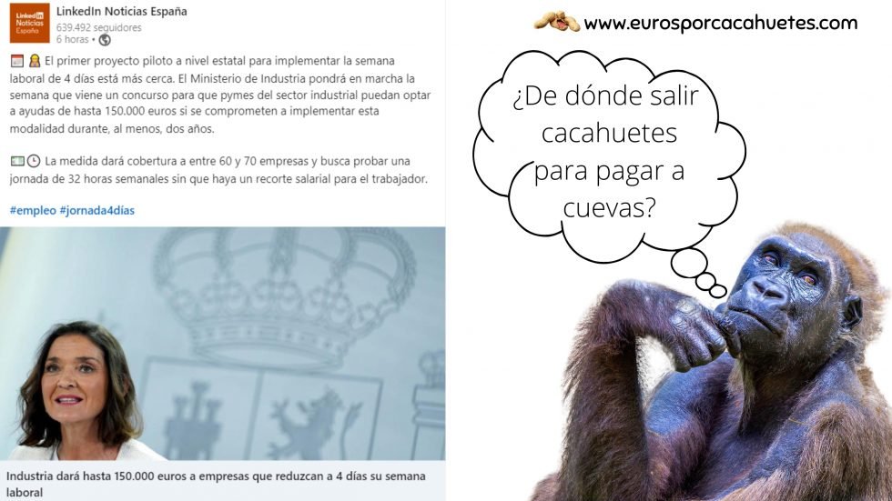 Euros por cacahuetes analiza la noticia del plan de reducción de jornada laboral a 4 días en España propuesto por el Gobierno.
